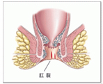 肛裂是齒狀線下肛管皮膚層裂傷后形成的小潰瘍。方向于肛管縱軸平行,長0.5~1.0cm,呈梭形或橢圓形,常引起肛周劇痛。多見于青、中年人,絕大多數肛裂位于肛管的后正中線上,也可在前正中線上,側方出現肛裂極少。若側方出現肛裂應想到腸道炎性疾病(如結核、潰瘍性結腸炎及Crohn病等)或腫瘤的可能。